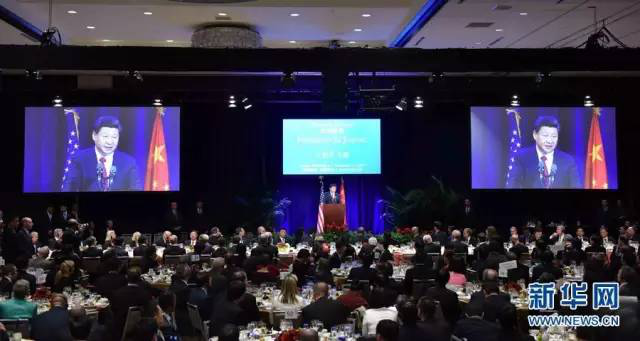 2015年9月22日,國(guó)家主席習(xí)近平在美國(guó)華盛頓州西雅圖市出席華盛頓州當(dāng)?shù)卣兔绹?guó)友好團(tuán)體聯(lián)合舉行的歡迎宴會(huì)并發(fā)表演講。 新華社記者 李濤 攝