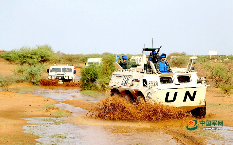 中國第5批赴馬里維和警衛(wèi)分隊(duì)武裝車隊(duì)進(jìn)行戰(zhàn)術(shù)演練。韓立建攝