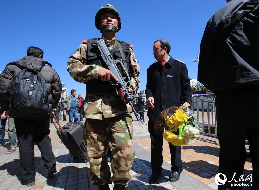 2014年3月2日,昆明,昆明火車站秩序基本恢復(fù),武裝警察進(jìn)駐昆明火車站執(zhí)勤。