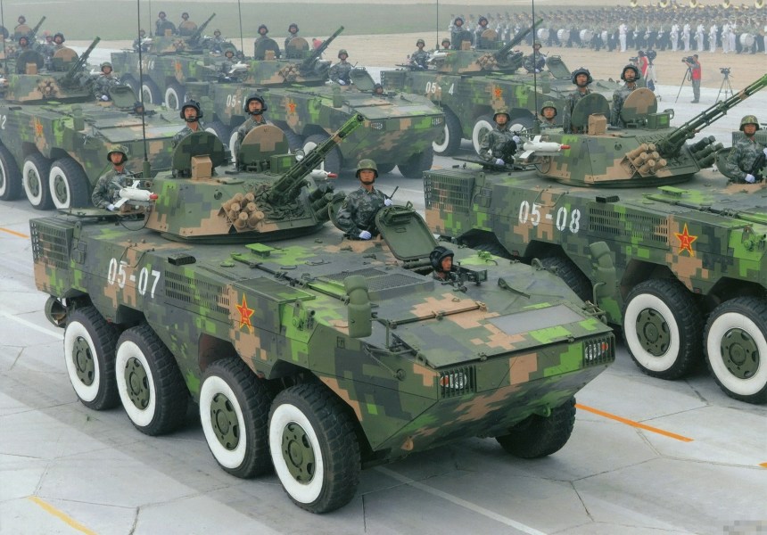 2009年10月1日的中華人民共和國首都各界慶祝中華人民共和國成立60周年大會的分列式上,09式步兵戰(zhàn)車首次正式公開亮相。該車長8米,寬3米,車高2.1米,全重21噸(比俄羅斯的羅斯托克8輪步兵戰(zhàn)車重4噸),成員3人,載員7人,動力為引進生產(chǎn)的道依茨渦輪增壓中冷柴油機功率340千瓦,機械式自動變速箱。車組成員為3名,分別是車長、射手兼操縱員和駕駛員。另外,該車后部的裝甲艙內(nèi)可搭載7名全副武裝的士兵。
