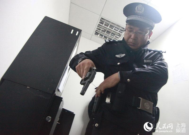 4月20日上午7時(shí),上海市公安局長寧區(qū)江蘇路派出所民警張令合正在驗(yàn)槍。