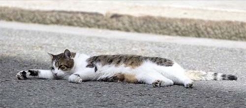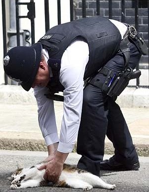 卡梅倫的“首席捕鼠官”“拉里”橫躺在首相府馬路中間(網(wǎng)頁(yè)截圖)