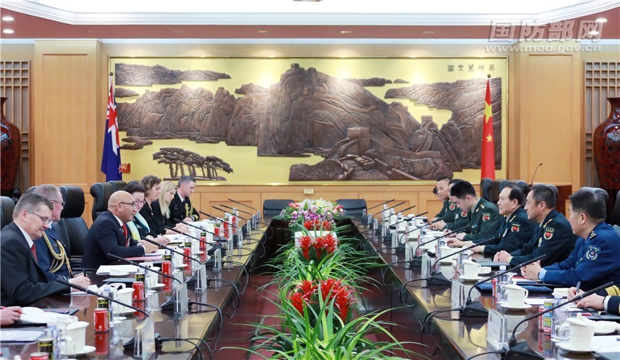 7月2日,國務(wù)委員兼國防部長魏鳳和在八一大樓與來訪的新西蘭國防部長馬克舉行會談。李曉偉攝