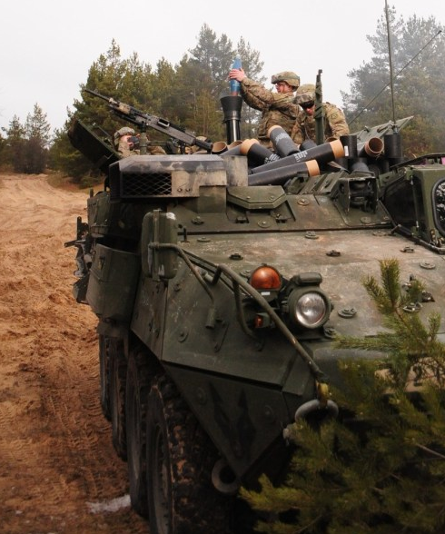 2015年3月6日,北約國家代號(hào)“2015-大西洋決心”實(shí)戰(zhàn)軍演仍在拉脫維亞境內(nèi)繼續(xù),該國與俄羅斯是鄰國。演習(xí)還是由美軍主導(dǎo),東道主拉脫維亞派兵進(jìn)行支援。美軍出動(dòng)一支快反部隊(duì),主要裝備斯特瑞克戰(zhàn)車系統(tǒng)。在對(duì)假想敵進(jìn)行進(jìn)攻過程中,美軍還動(dòng)用上特瑞克戰(zhàn)車上搭載的車載120毫米重型迫擊炮進(jìn)行攻擊。