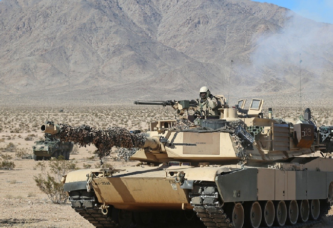2015年2月,美網(wǎng)站曝光了一組美軍在加利福尼亞州的訓(xùn)練照,照片中的M1A2坦克采用了沙漠迷彩,但附加裝備如掃雷鏟等則涂裝了美軍標(biāo)準(zhǔn)綠色,展現(xiàn)出混合迷彩的獨(dú)特美感。