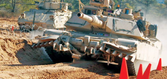 M1A2坦克在佐治亞州本寧堡基地參加清障前進(jìn)演練。
