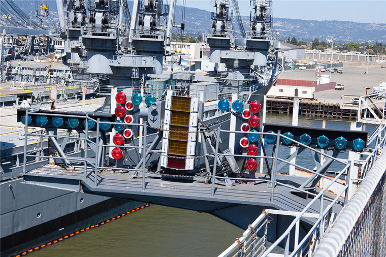 飛行員看到琥珀色燈光位于基準(zhǔn)綠色燈光上方時(shí),代表著下滑角度過大,位于下方時(shí),意味著下滑角過小。燈光為紅色、角度位于基準(zhǔn)燈下方,則必須拉起復(fù)飛。如果琥珀色燈光剛好在基準(zhǔn)燈中間,則角度適合艦載機(jī)進(jìn)行攔阻著艦。