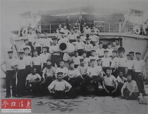 甲午戰(zhàn)爭前日軍“高千穗”號巡洋艦官兵與主炮合影