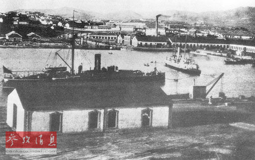 在旅順港東港停泊的北洋海軍艦船,近處岸邊為“濟遠”艦。(資料圖)