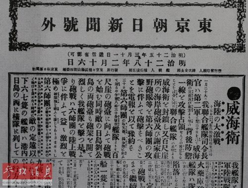 1895年2月16日《東京朝日新聞》報(bào)道威海衛(wèi)戰(zhàn)斗的版面(資料圖)