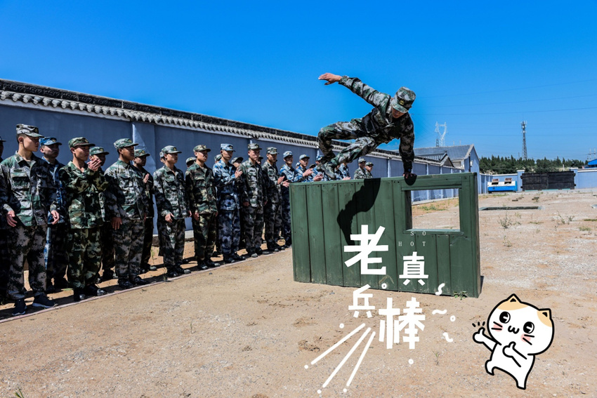 集訓(xùn)的最后一天,隊(duì)里特意請來了剛退伍的老兵來為大家做示范,老班長們整齊的隊(duì)列動作,過硬的軍事素質(zhì),贏來了新兵們的陣陣喝彩。