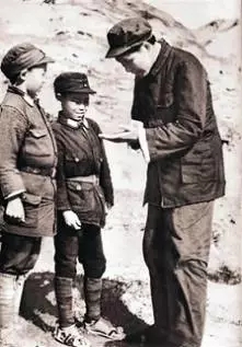 毛澤東和兩個小八路(新華社攝影記者石少華攝)