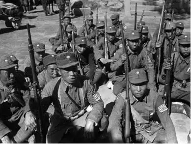 同一記者拍攝于1944年,八路軍戰(zhàn)士都沒有佩戴領章,應該不是延安的留守兵團部隊。