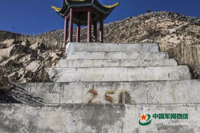 官兵們在上山中途用紅筆標注的臺階數(shù)。