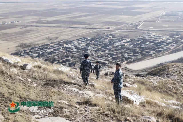 官兵在山坡上用石頭擺成的“志守藍(lán)天”。