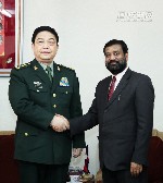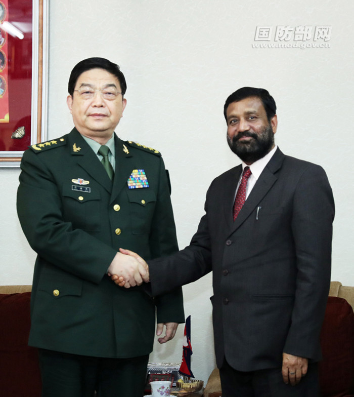 當(dāng)?shù)貢r(shí)間3月24日下午,正在尼泊爾訪問的國(guó)務(wù)委員兼國(guó)防部長(zhǎng)常萬全會(huì)見了尼副總理兼內(nèi)政部長(zhǎng)尼迪。李曉偉攝