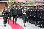 當(dāng)?shù)貢r間3月24日上午,正在尼泊爾訪問的國務(wù)委員兼國防部長常萬全會見了尼軍隊(duì)參謀長切特里。圖為常萬全檢閱尼軍儀仗隊(duì)。李曉偉攝