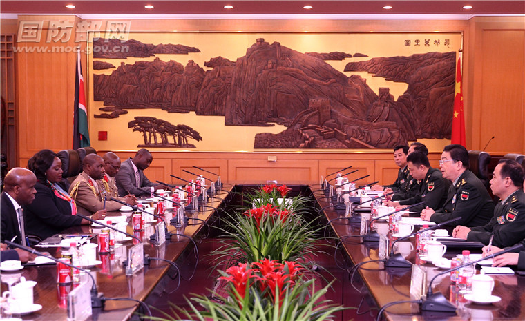 4月20日下午,國務(wù)委員兼國防部長常萬全在八一大樓與來訪的肯尼亞國防部長奧馬莫女士舉行會(huì)談。李曉偉 攝