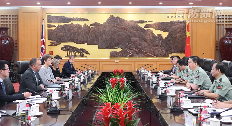 7月20日下午,國務(wù)委員兼國防部長常萬全在八一大樓會見了來訪的英國首相國家安全顧問塞德維爾。李曉偉 攝