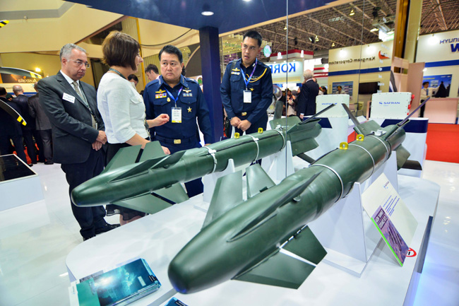 3月17日,人們?cè)隈R來(lái)西亞蘭卡威舉辦的國(guó)際海事與航空展上參觀。張紋綜攝