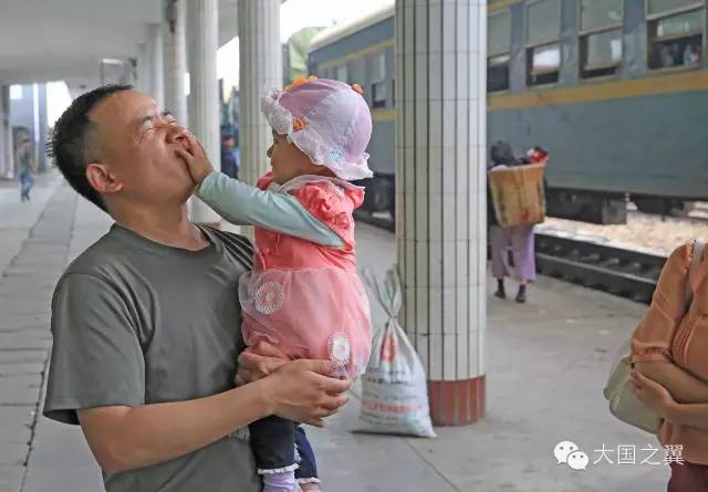 2015年5月26日,成空導(dǎo)彈某旅司令部參謀葉芳平,參加演習(xí)任務(wù)歸建時,專列正好途經(jīng)家鄉(xiāng)。他抱著1歲4個月大的女兒盡情地享受著這短暫幸福的時刻。葉芳平結(jié)婚3年,回家2次,其中一次就是在女兒葉若琳出生的時候。袁海 攝