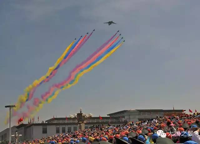 2015年9月3日,中國人民抗日戰(zhàn)爭暨世界反法西斯戰(zhàn)爭勝利70周年紀念大會在北京隆重舉行。這是空中梯隊飛越天安門廣場。 傅江寧 攝