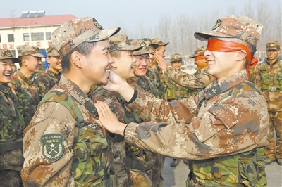 中國(guó)軍網(wǎng)據(jù)解放軍報(bào)訊 1月3日,濟(jì)南軍區(qū)某機(jī)步旅裝步五連官兵訓(xùn)練間隙開(kāi)展“蒙眼摸兵”游戲,讓蒙上眼睛的班長(zhǎng)找出本班的兵。該旅通過(guò)開(kāi)展“知兵心、解兵情”活動(dòng),進(jìn)一步密切官兵關(guān)系,增進(jìn)戰(zhàn)友情誼。于華良攝?