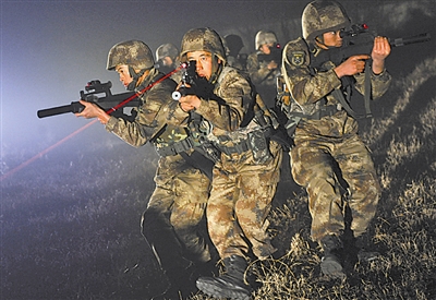 戰(zhàn)斗打響,劉瑞欣帶領(lǐng)4組特戰(zhàn)隊(duì)員,突破往日訓(xùn)練高度,從50米高的樓頂躍下,立體突入,分兵殲敵,圓滿(mǎn)完成突擊和掩護(hù)任務(wù)。