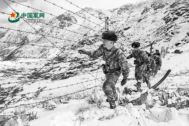 王宇(左一)和戰(zhàn)友正在巡查邊境線。?李?西攝