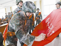 遼寧某預(yù)備役給水團(tuán)第4批參加馬里維和的官兵在軍旗上鄭重簽名。張鳳軒 攝