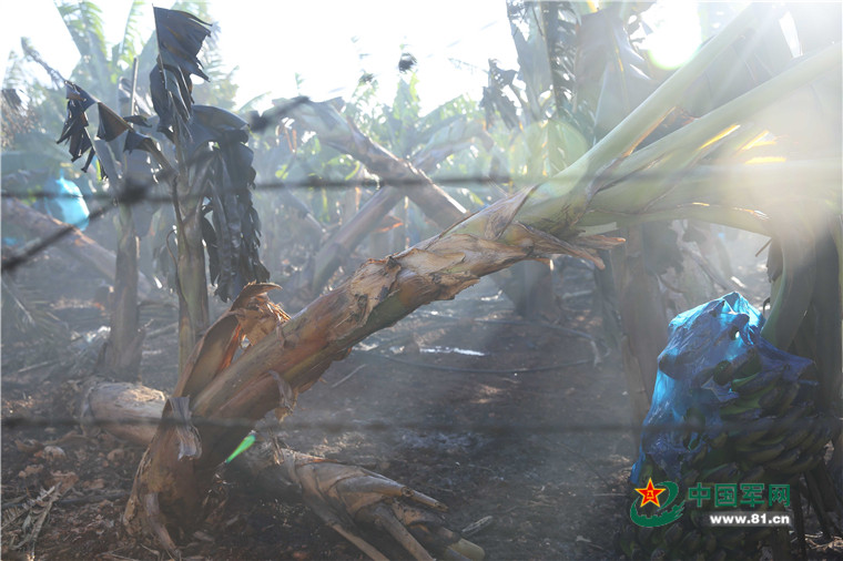被燒毀的香蕉林。華迅 攝