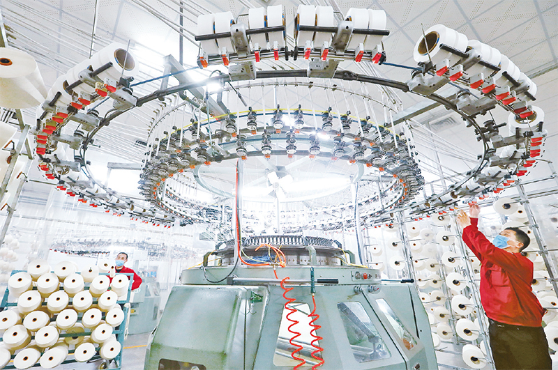 2022年一季度,制造業(yè)增加值占GDP比重為28.9%,同比提高1.3個百分點(diǎn);貨物進(jìn)出口總額9.4萬億元,同比增長10.7%,其中出口增長13.4%,進(jìn)口增長7.5%。圖為2022年3月22日,在山東省青島市即墨區(qū)的青島頤和針織有限公司,工人在生產(chǎn)服裝面料,加緊趕制生產(chǎn)訂單,滿足國內(nèi)外市場需求。 新華社發(fā) 梁孝鵬/攝