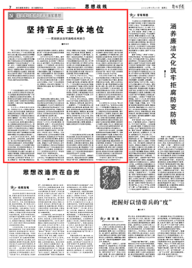 廣大官兵既是部隊各項工作的參與者,也是軍隊發(fā)展進(jìn)步的推動者。習(xí)主席強(qiáng)調(diào),要堅持相信和依靠廣大官兵,尊重官兵主體地位和首創(chuàng)精神。在貫徹依法治軍戰(zhàn)略中堅持官兵主體地位,既充分體現(xiàn)了發(fā)揚(yáng)我軍優(yōu)良傳統(tǒng)的內(nèi)在要求,又集中反映了推進(jìn)強(qiáng)軍事業(yè)的現(xiàn)實需要。