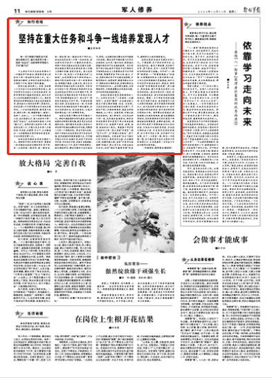 強軍之道,要在得人。當前,在向第二個百年奮斗目標進軍的新征程上,面對世界百年未有之大變局加速演變、世界軍事競爭日趨激烈的現(xiàn)實,我們比歷史上任何時期都更加渴求人才。新的形勢任務和軍事領域各方面發(fā)生的深刻變革,要求我們必須加快軍事人員現(xiàn)代化,更好發(fā)揮人才對強軍事業(yè)的引領和支撐作用。人才成長規(guī)律表明,越是重大任務,越是斗爭一線,越能考驗人、鍛煉人、培養(yǎng)人、成就人。一名干部能不能擔當大任、成為棟梁之才,重大任務和斗爭一線是“試金石”,也是培養(yǎng)和造就人才的“磨刀石”。堅持在重大任務和斗爭一線培養(yǎng)發(fā)現(xiàn)人才,才能讓更多優(yōu)秀人才經風雨、見世面,壯筋骨、長才干,從而鍛造出一大批能夠擔當強軍重任的高素質、專業(yè)化新型軍事人才。