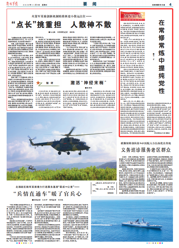 黨性是黨員干部立身、立業(yè)、立言、立德的基石。習(xí)主席強(qiáng)調(diào),領(lǐng)導(dǎo)干部要把錘煉黨性、提高思想覺(jué)悟作為終身課題,活到老、學(xué)到老、修養(yǎng)到老。軍隊(duì)黨員干部應(yīng)把加強(qiáng)黨性修養(yǎng)作為政治整訓(xùn)的重要內(nèi)容,加強(qiáng)思想改造、政治鍛造和作風(fēng)塑造,煉就“金剛不壞之身”。