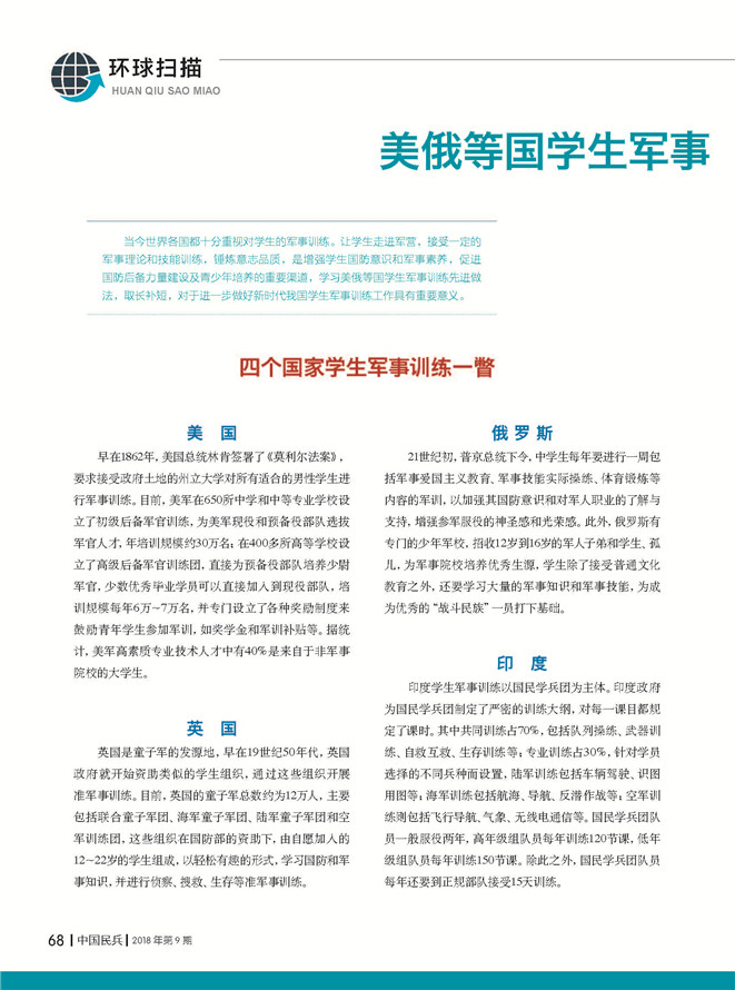 美俄等國(guó)學(xué)生軍事訓(xùn)練概覽及啟示