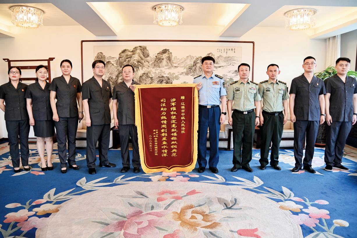 遼源軍分區(qū)聯(lián)合駐地政法部門開展積案大化解專項行動取得階段性成果后向市法院贈送錦旗。 (攝影/趙延存)