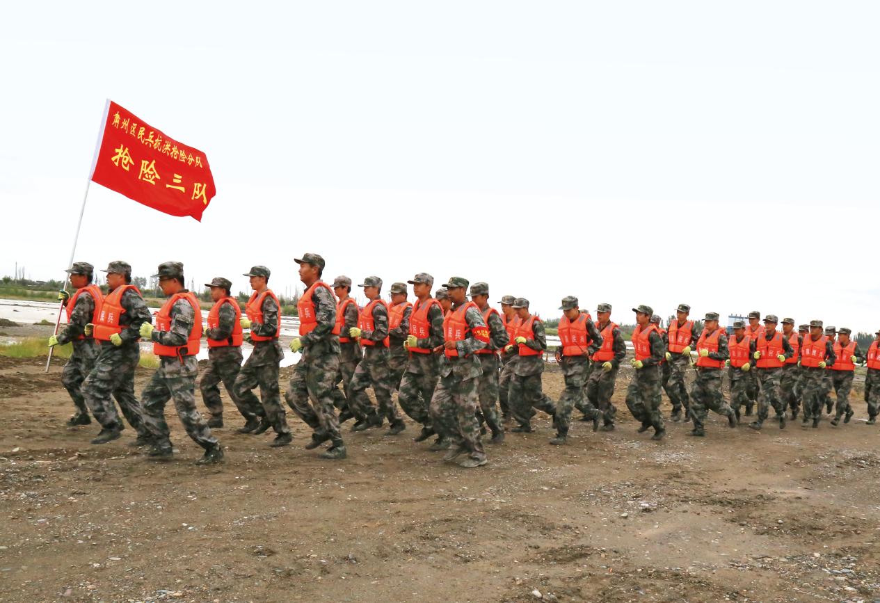酒泉市肅州區(qū)人武部組織民兵開展防汛抗洪演練。