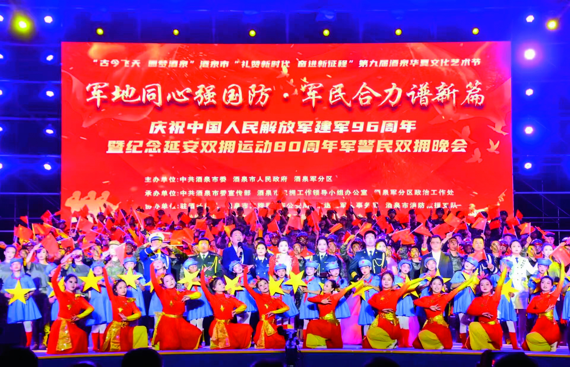 酒泉市舉行慶祝建軍96周年暨紀(jì)念延安雙擁運(yùn)動80周年軍警民雙擁晚會。
