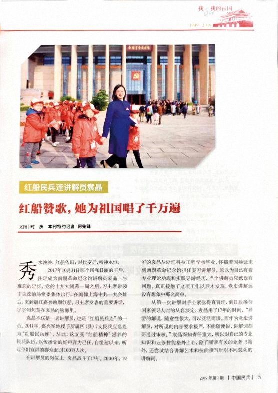 2019年1月,《中國民兵》雜志專題報(bào)道了浙江省嘉興市紅船民兵先鋒連民兵主動(dòng)傳承紅船精神、模范踐行紅船精神、積極傳播紅船精神的風(fēng)采風(fēng)貌,連隊(duì)“傳承紅船精神、爭當(dāng)紅船傳人”志愿服務(wù)項(xiàng)目被評為“全國學(xué)雷鋒最佳志愿服務(wù)項(xiàng)目”,連隊(duì)黨支部被軍委國防動(dòng)員部黨委表彰為“先進(jìn)民兵黨組織”。今天,民兵連“傳承紅船精神、爭當(dāng)紅船傳人”的旗幟仍在紅船側(cè)畔高高飄揚(yáng)——