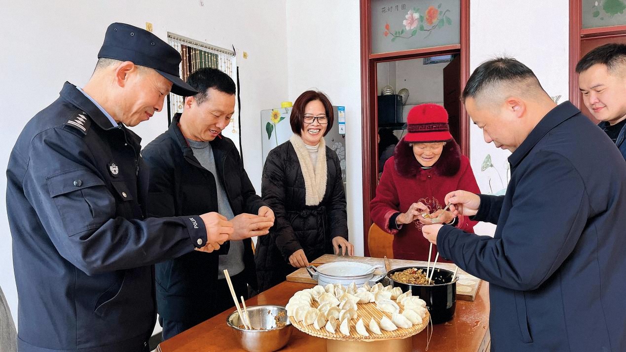 陳曉磐(左一)到片區(qū)群眾家中共度新春。