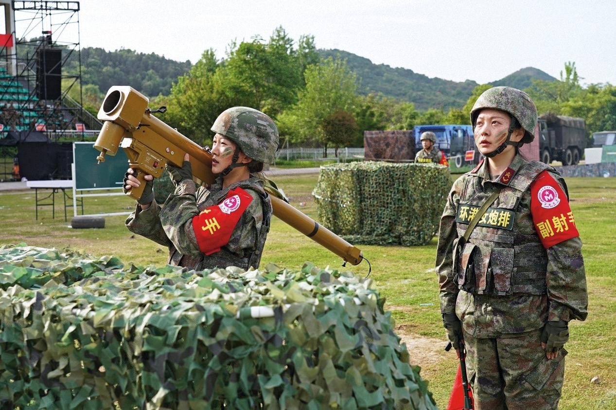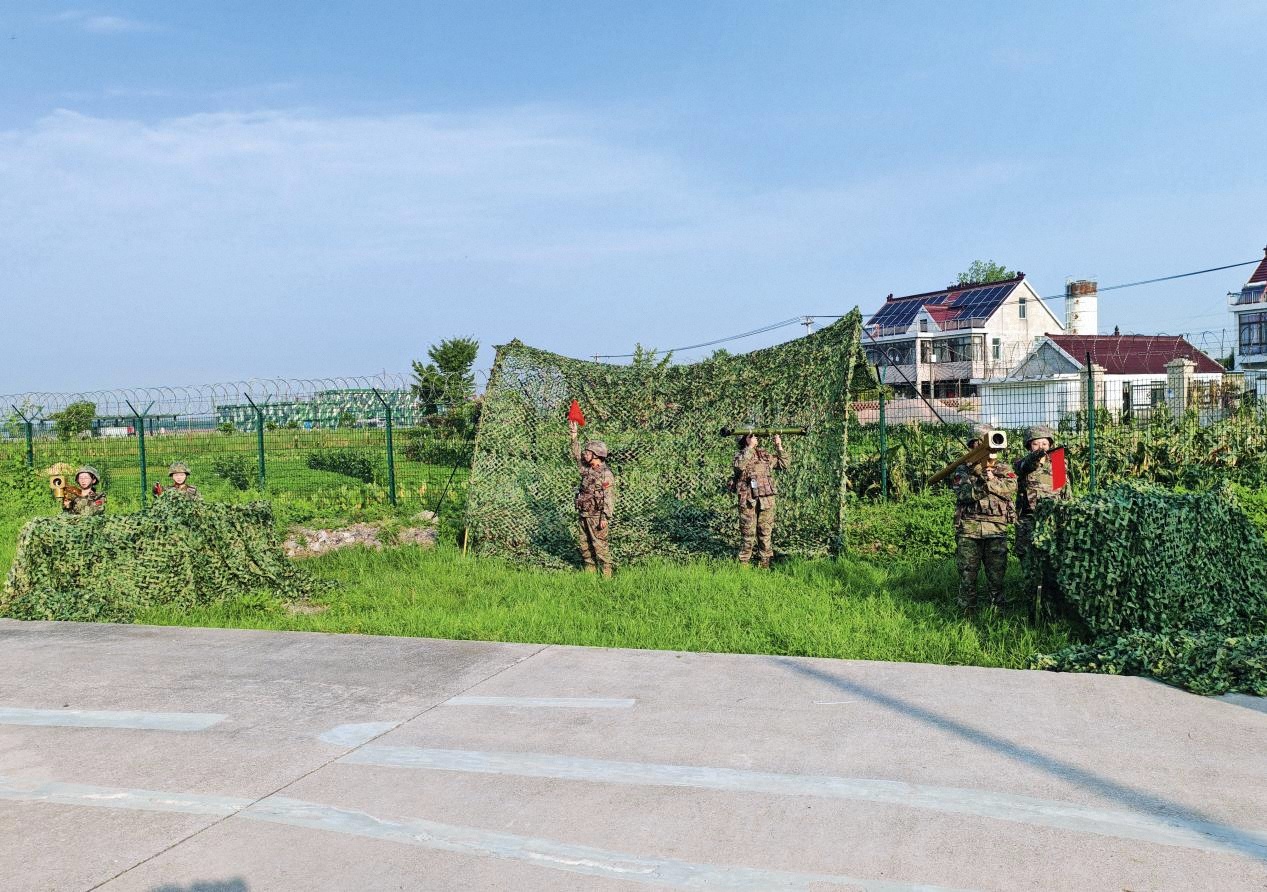 環(huán)港女子民兵炮兵排在機(jī)場(chǎng)等重要目標(biāo)周邊開展構(gòu)建隱蔽發(fā)射陣地訓(xùn)練。