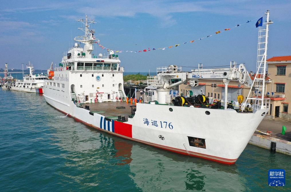 11月13日在??谂臄z的“海巡176”輪列編儀式現(xiàn)場。新華社記者 郭程 攝