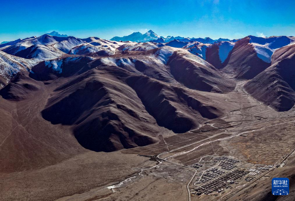 珠穆朗瑪峰腳下的西藏定日縣措果鄉(xiāng)野江村,靠近珠峰方向為建成并交付群眾使用的新房(11月12日攝,無人機照片)。