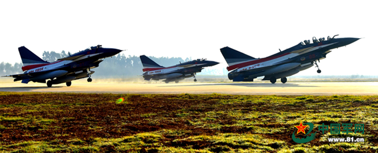北京時(shí)間11月22日9時(shí),空軍八一飛行表演隊(duì)7架殲-10表演機(jī)從云南某機(jī)場相繼起飛,于當(dāng)?shù)貢r(shí)間10時(shí)抵達(dá)泰國空軍呵叻基地。按計(jì)劃,空軍八一飛行表演隊(duì)結(jié)合中泰空軍“鷹擊-2015”聯(lián)合訓(xùn)練閉幕式,進(jìn)行兩場飛行表演。