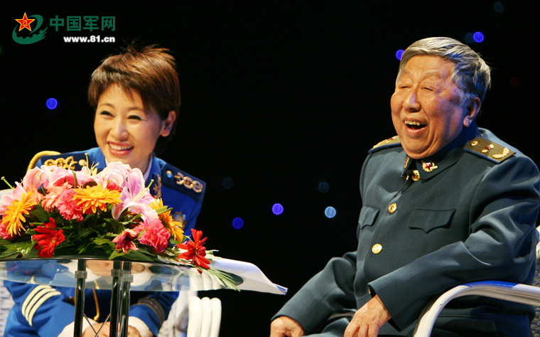 2007年3月30日,閻肅(右)和央視主持人衛(wèi)晨霞在空政文工團(tuán)藍(lán)天劇院一同主持藍(lán)天四季樂(lè)壇音樂(lè)會(huì)。郭幸福 攝