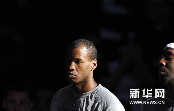 圖為科林斯在紐約布魯克林網(wǎng)隊主場準(zhǔn)備出場。(2014年3月5日攝) 新華社記者王雷攝