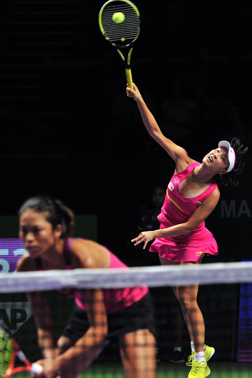 10月26日,彭帥(右)/謝淑薇在比賽中。新華社發(fā)(鄧智煒攝)