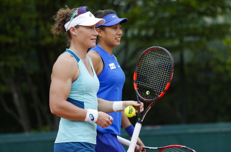 5月26日,中國選手張帥和她的搭檔、澳大利亞選手斯托瑟(前)在比賽中。