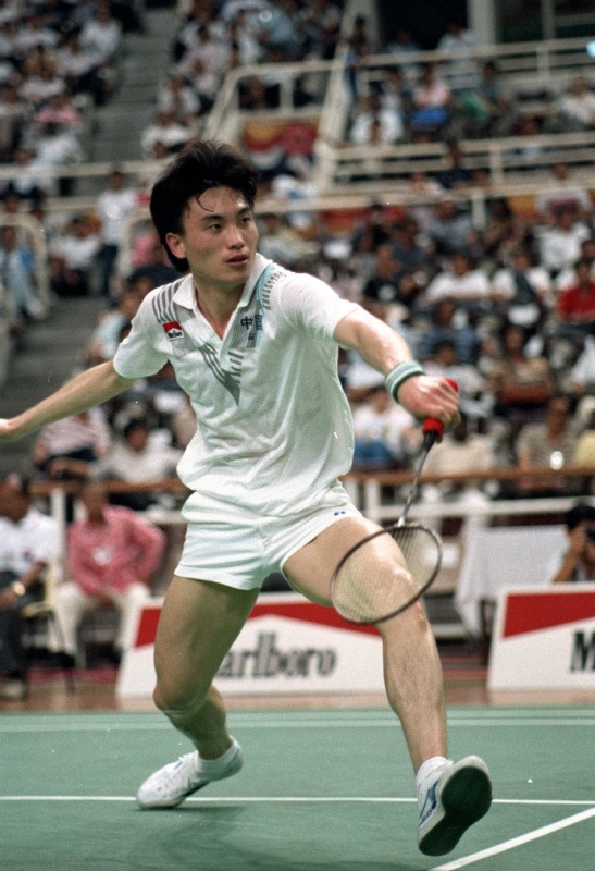 圖為1988年,左手持拍的中國選手趙劍華在湯姆斯杯比賽中回球。